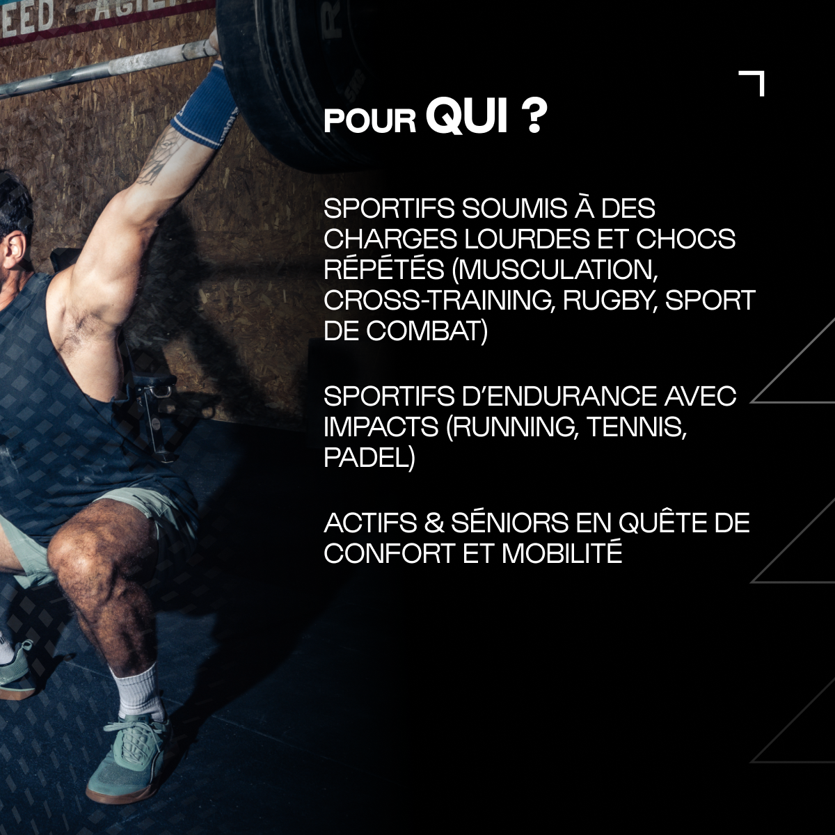 Soutien au confort, à la fluidité et à la performance dans les mouvements après l'effort